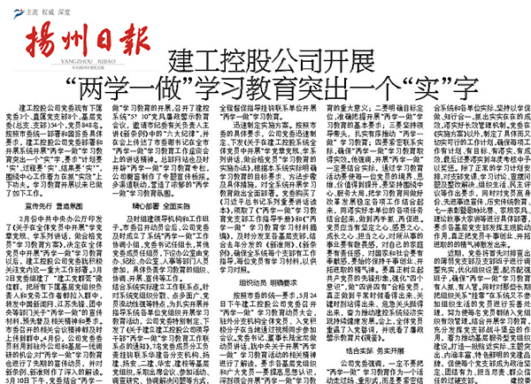 《揚(yáng)州日?qǐng)?bào)》刊文報(bào)道建工控股“兩學(xué)一做”進(jìn)展情況