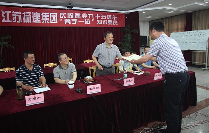 為慶祝建黨95周年,深入推進(jìn)“兩學(xué)一做”學(xué)習(xí)教育工作,6月24日,系統(tǒng)企業(yè)揚(yáng)建集團(tuán)組織開展的“兩學(xué)一做”學(xué)習(xí)教育知識(shí)競(jìng)賽在揚(yáng)建總部七樓會(huì)議室舉行,揚(yáng)建黨委書記曹德榮同志,黨委副書記、紀(jì)委書記張振新同志等領(lǐng)導(dǎo)出席并為獲獎(jiǎng)代表隊(duì)頒獎(jiǎng)。