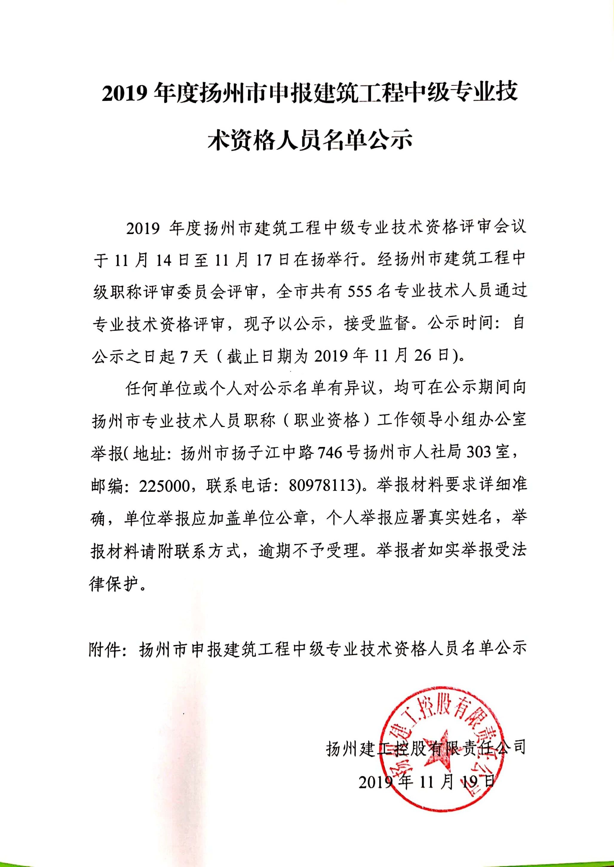 2019年度揚州市申報建筑工程中級專業技術資格人員名單公示.jpg